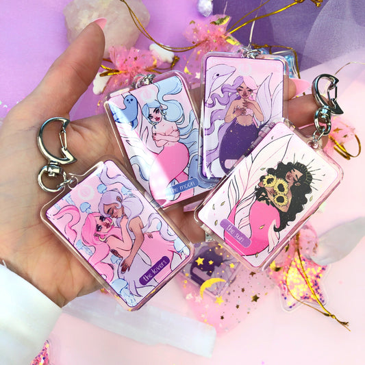 tarot card mermaids acrylic keyring charms