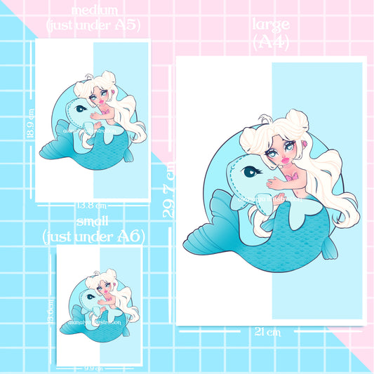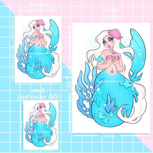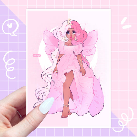 fairy moon goddess wall art print, moon artwork, magical illustration, selene aesthetic, cute decor, feminine decor