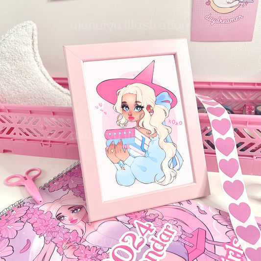 romantic bookish witch print | vibrant wall art | cute girls room wall decor