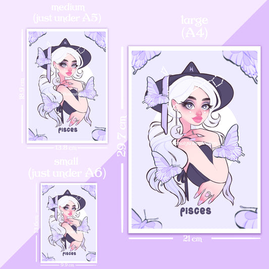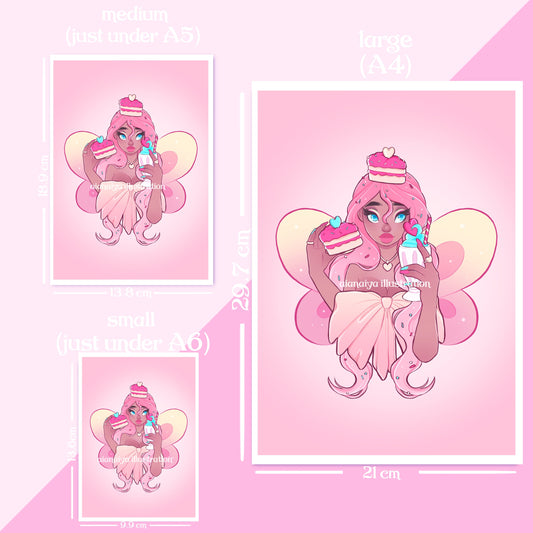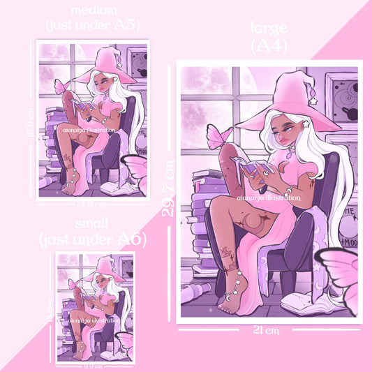 wisteria butterfly fairy wall art print, cute decor, faerie illustration, kawaii, collage prints, butterfly, floral