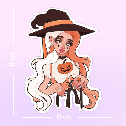 pumpkin witch orange die cut sticker flake