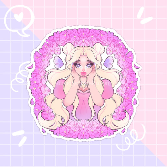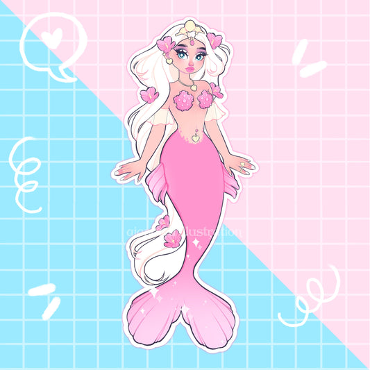 pink flower princess mermaid sticker