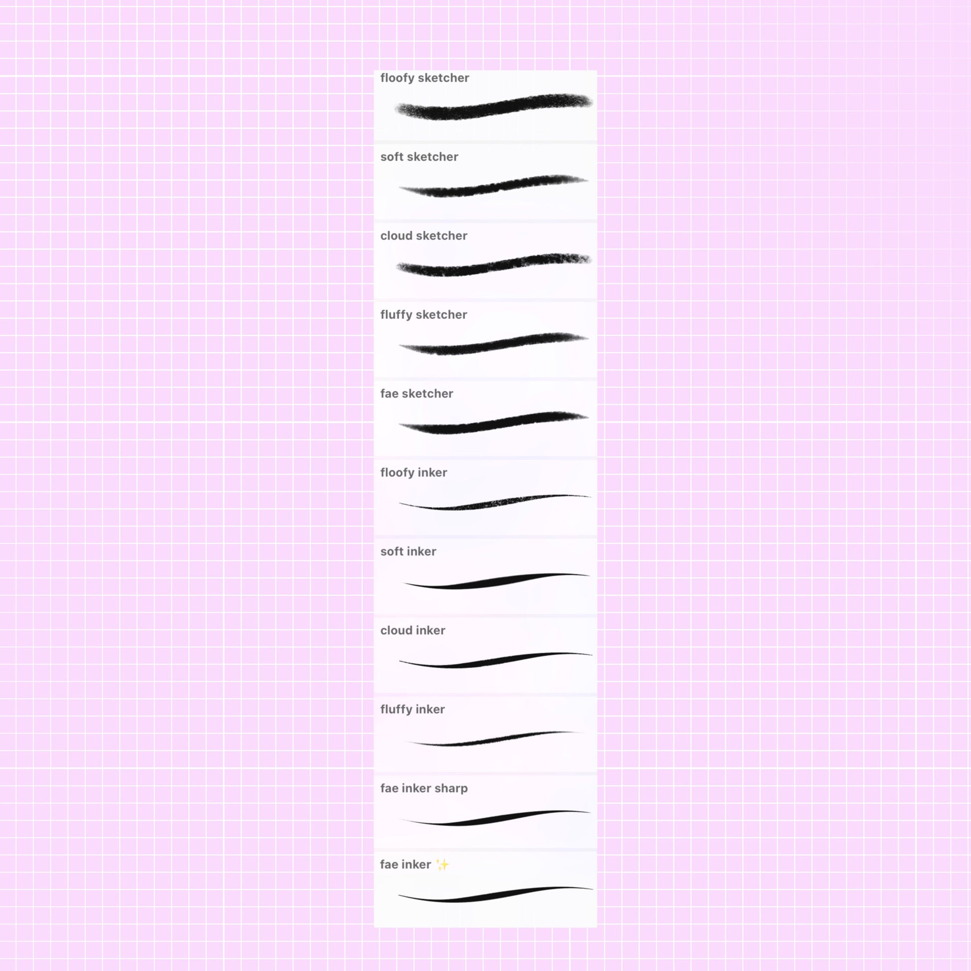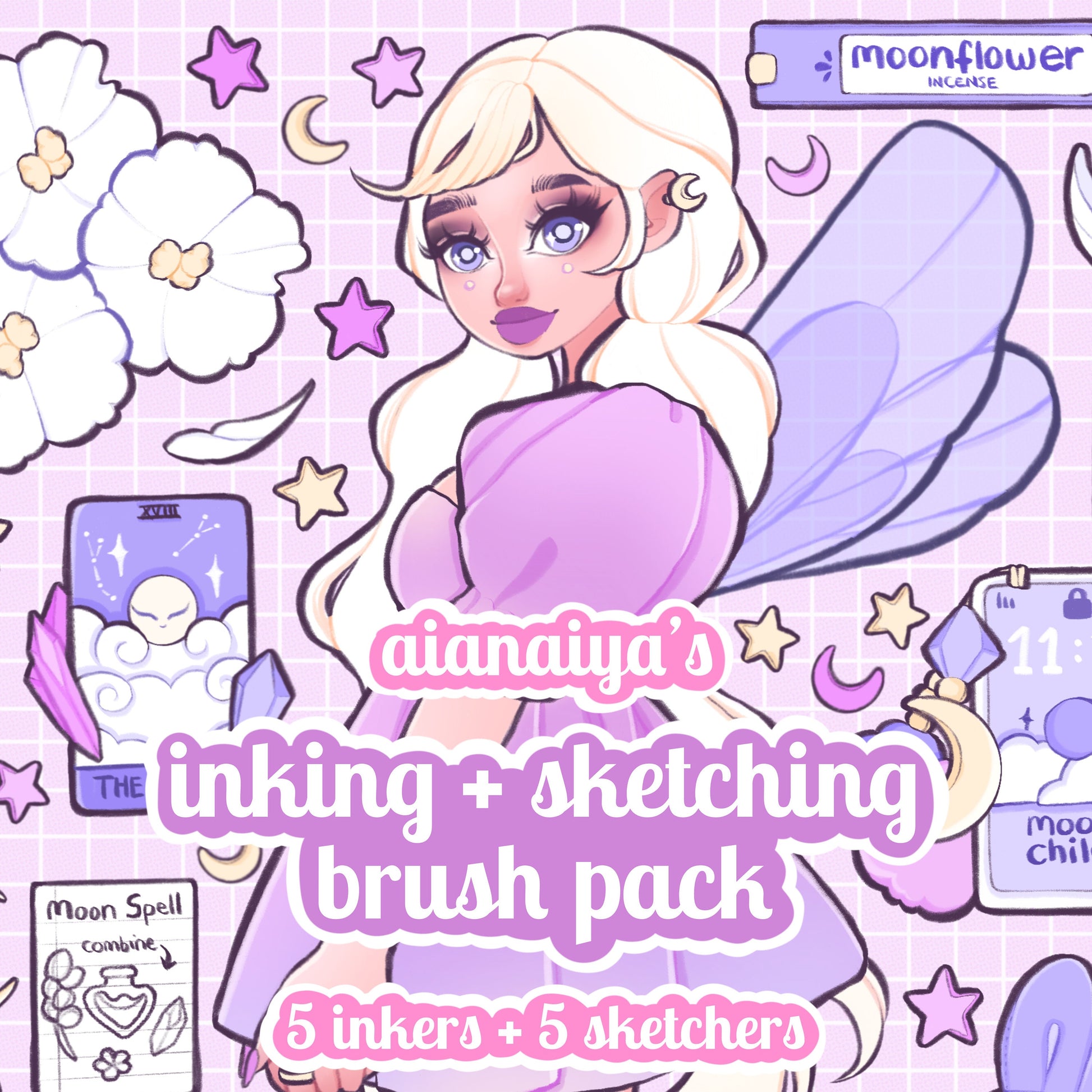 this is my full drawing pack of1 0 inking and sketching procreate brushes! it includes 5 linework inking brushes and 5 pencil sketching brushes. ranging from smooth to grainy textures!