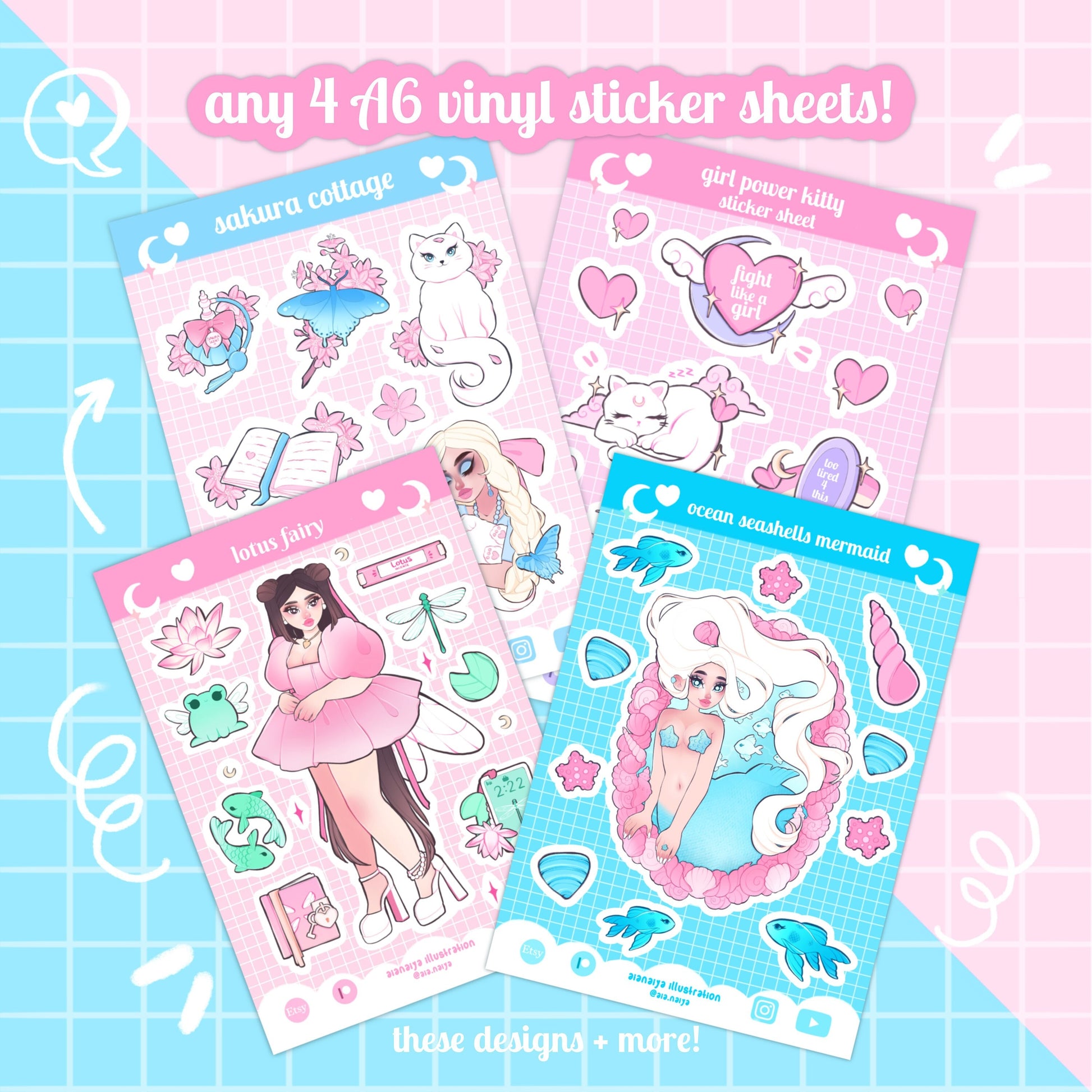 ANY 4 sticker sheets bundle A6 vinyl sheets