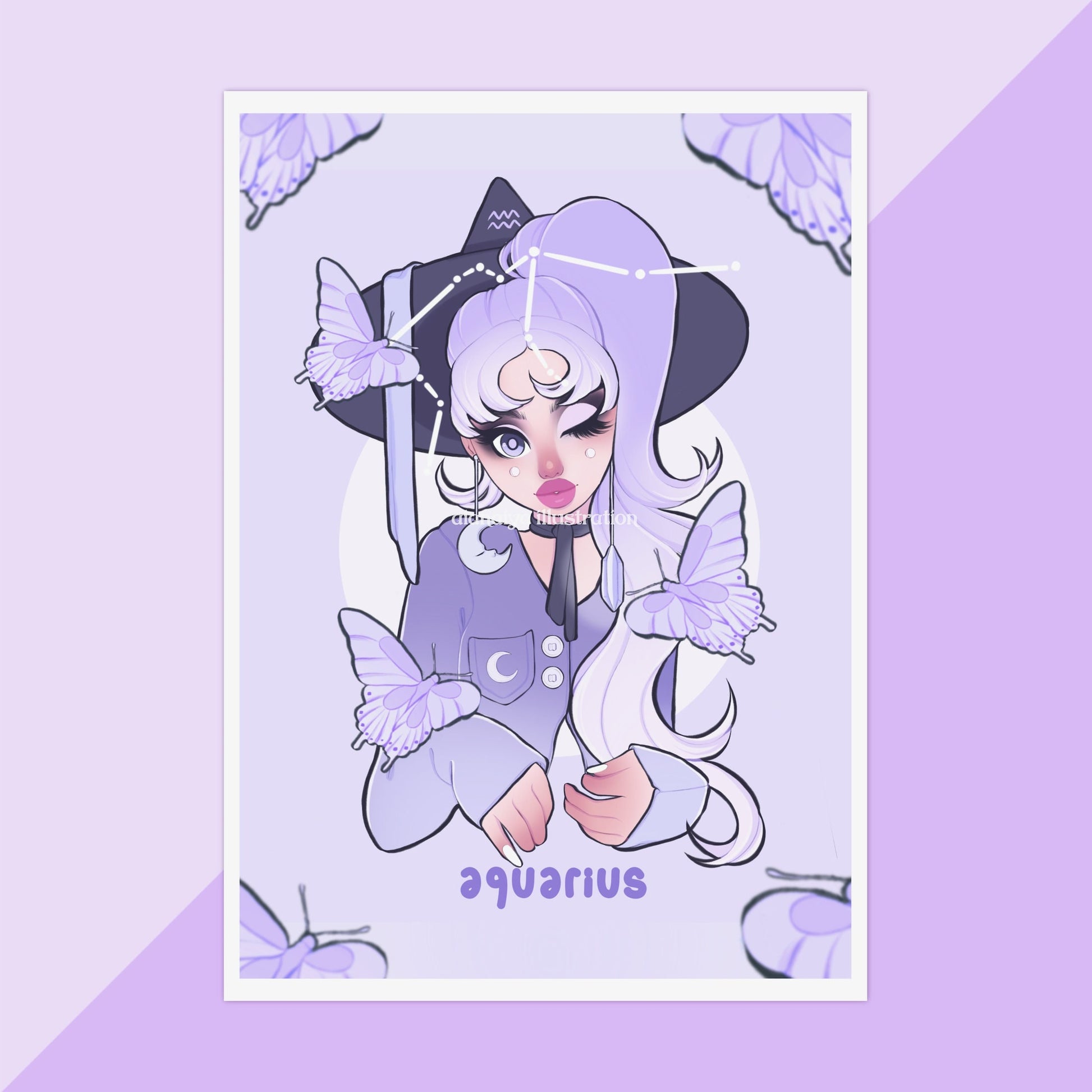 this is an aquarius wall art print available in sizes A6 (small), A5 (medium) and A4 (large) approximately.