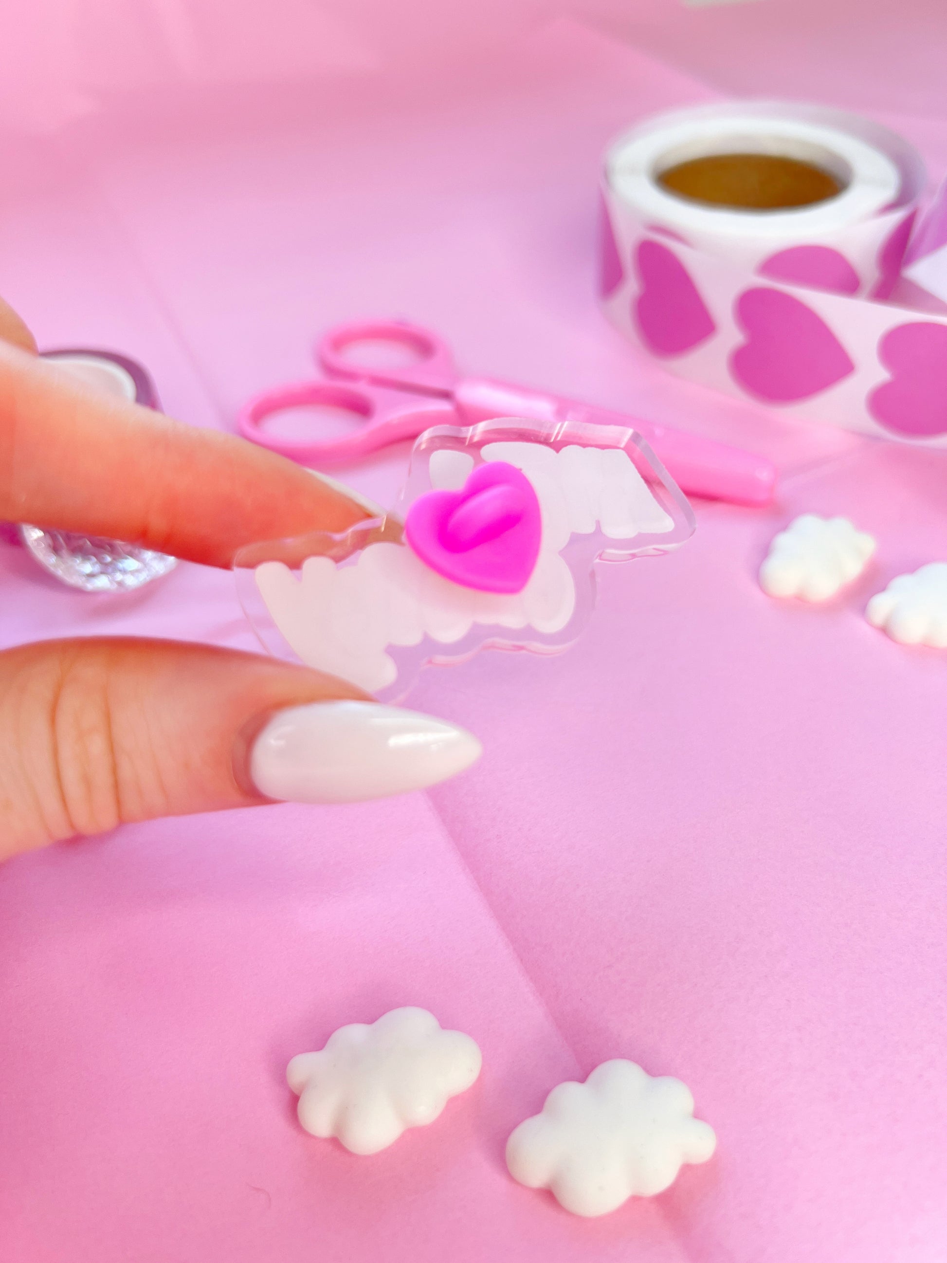 each pin measures 2 inches and comes with a pink heart rubber clutch ♡